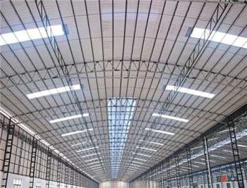 屋面采光板布置时一般采用从屋脊到屋檐通条采光,或从屋檐到屋中檩条的半通条采光。如果屋面采光率打不到室内采光的要求时,可增加采光带的条数(增大采光面积)或通过侧墙采光来补充。
